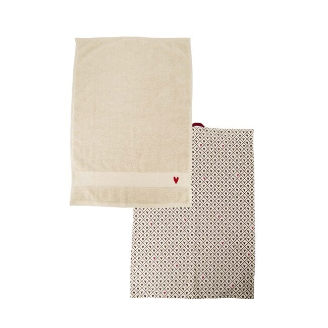 De Zusss keukenset met hartje is een charmante toevoeging aan iedere keuken. Deze set, uitgevoerd in zachte zandtinten met warme port- en bruine accenten, straalt warmte en gezelligheid uit. De combinatie van een handdoek en theedoek, beide met subtiele hartjesdetails, maakt deze set niet alleen praktisch, maar ook een sfeervolle blikvanger.