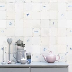 spul is en de verf op waterbasis\/natuurlijk product. Deze klant heeft ook een wandje met Studiot Ditte delftblauwe tegeltjes behangen dit behang is ook afneembaar.
