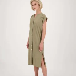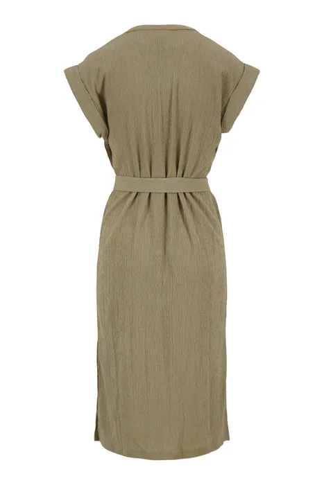 Zusss doorknoopjurk in crincle khakigroen